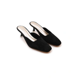 Designed to balance style and comfort, Corra Mules feature a sleek slip-on silhouette, suede fabric, and a soft insole for modern minimalist elegance.