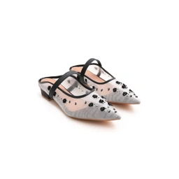 True to its name, the Jasmine mules feature delicate jasmine flower petals, crafted from hand-sewn sequins across the upper and side vamp. Finished with a sheer mesh instep and a Mary Jane–inspired design, it exudes refined elegance.